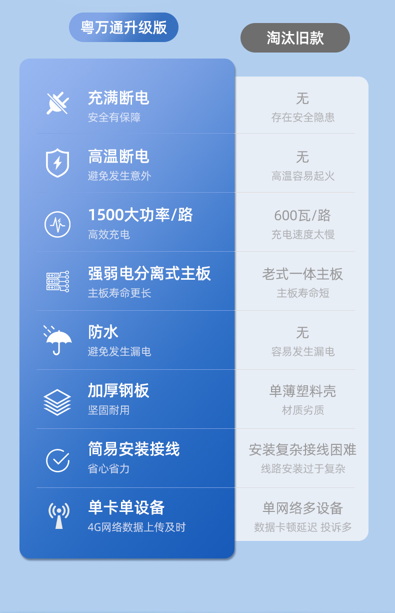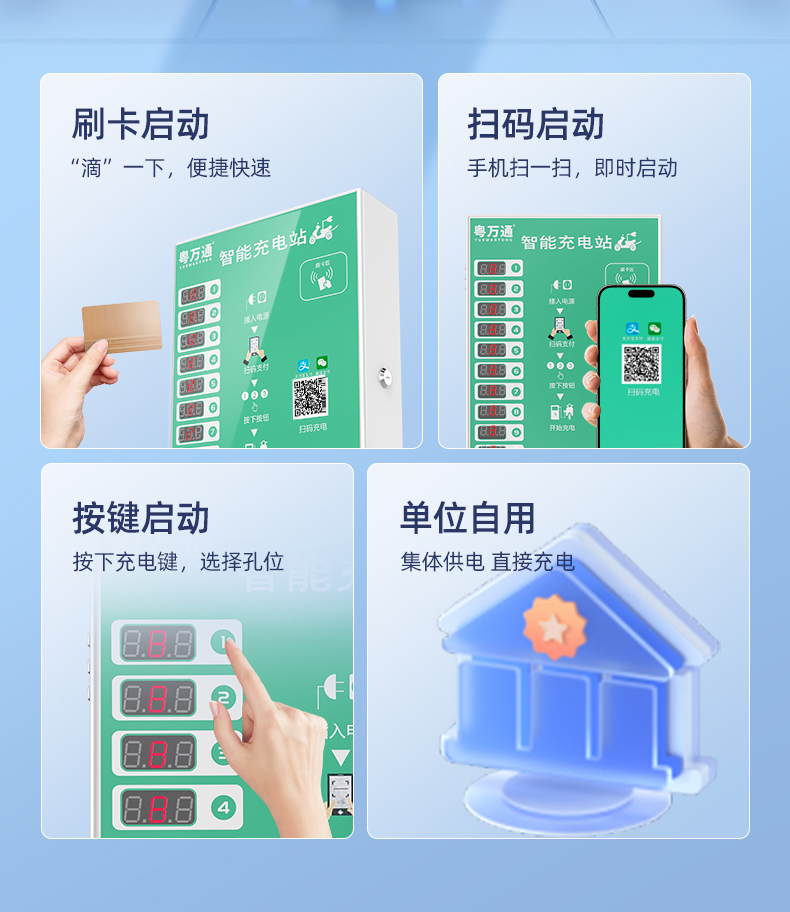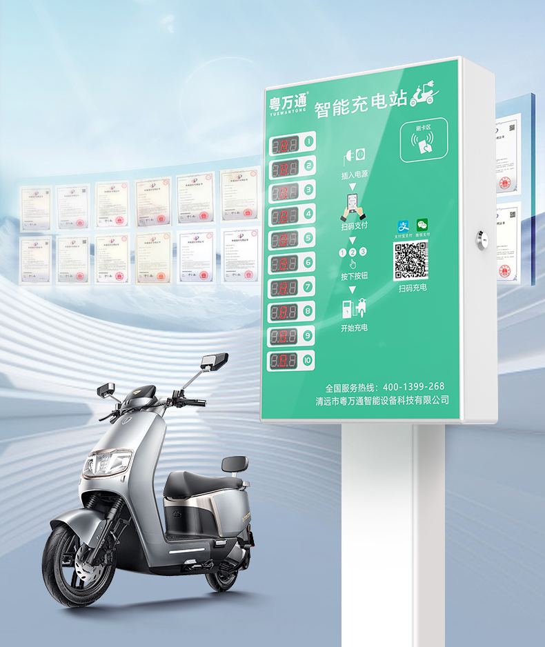 10路电瓶车充电桩 支持扫码+刷卡充电,单路最大支持1500瓦大功率输出,配漏电开关,新国标检测,消防过检,让充电再无后顾之忧。